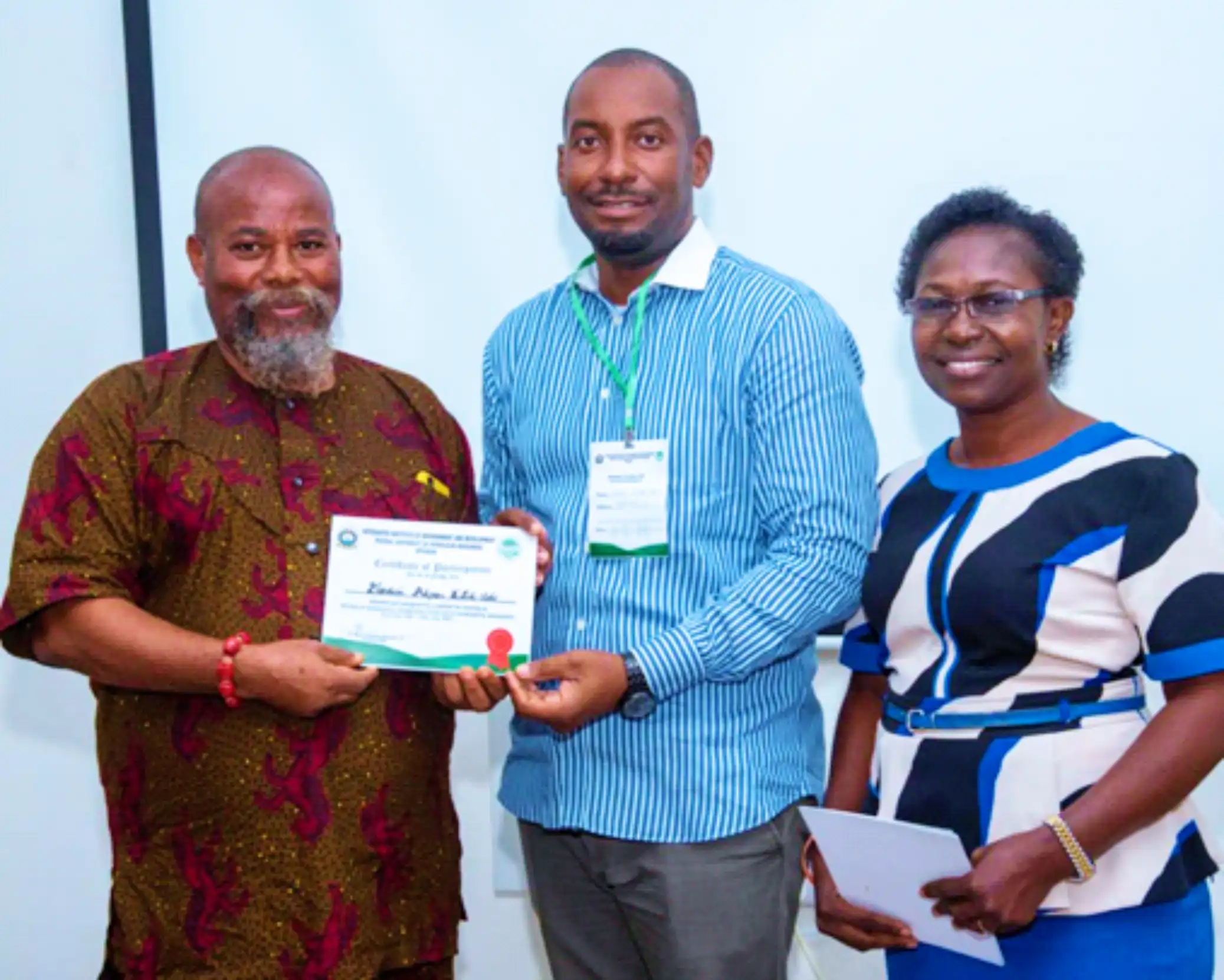 Presentation of Competency Certificate to Trainee by the Dean, College of Science(Prof. Edison Enaibe) and Ag., Director, IIED(Dr (Mrs) L.E. Tudararo-Aherobo